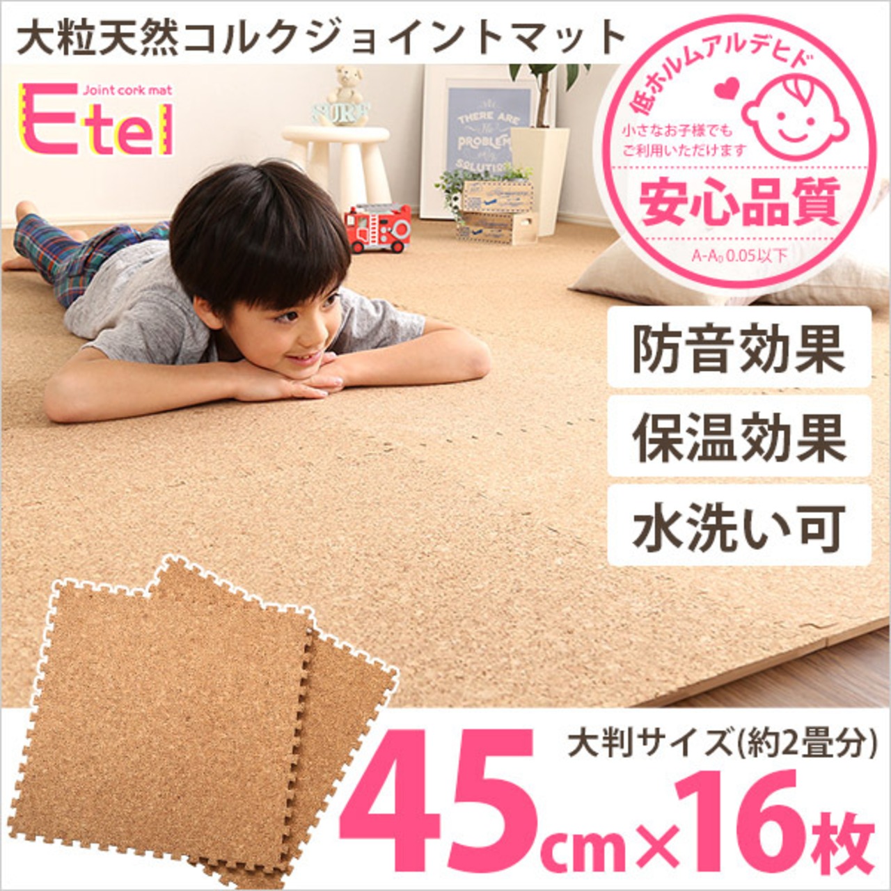 サイドパーツ付き!ジョイントコルクマット 16枚セット(大判45cm)安心の低ホルムアルデヒド、防音、保温【Etle-エーテル-】 CMT-16