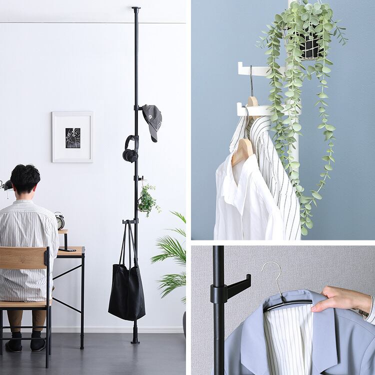 床と天井があれば、お部屋のどこでも使う事が出来る、おしゃれなつっぱりポールハンガー!