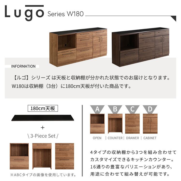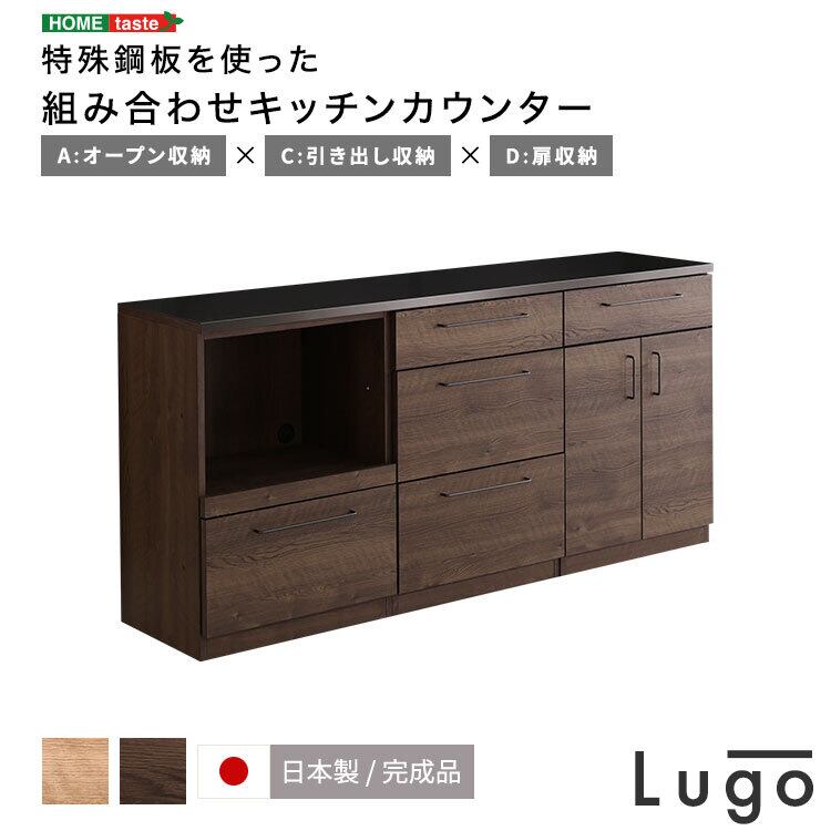 日本製 特殊鋼板を使った組み合わせキッチンカウンター 180cm オープン収納+引き出し収納+扉収納 SH-22-CKS180-ACD
