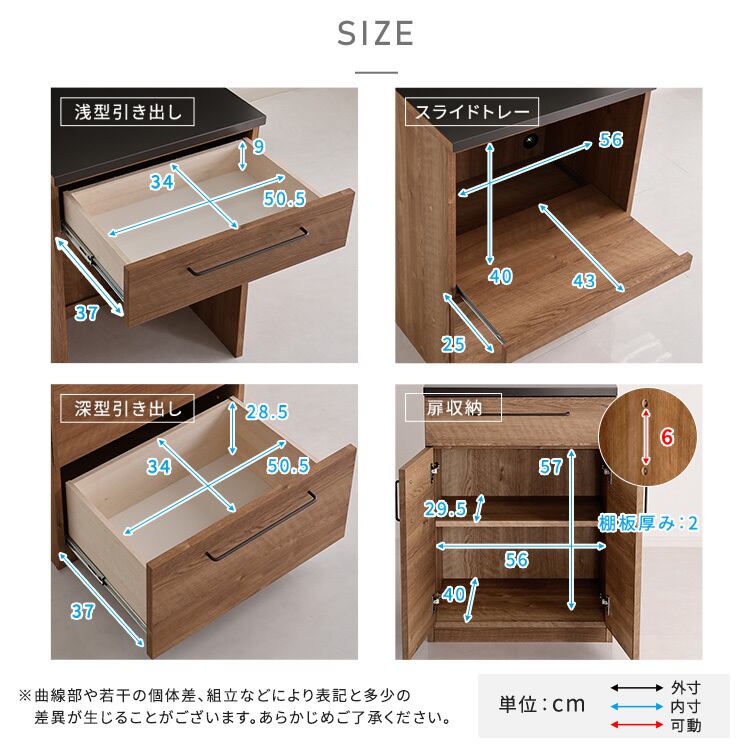 外寸はどの仕様も同じなので他の仕様のものと並べて使うことも可能です。