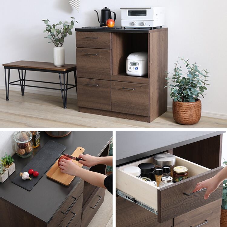 日本製 特殊鋼板を使ったキッチンカウンター(引き出しタイプ) 80cm幅!