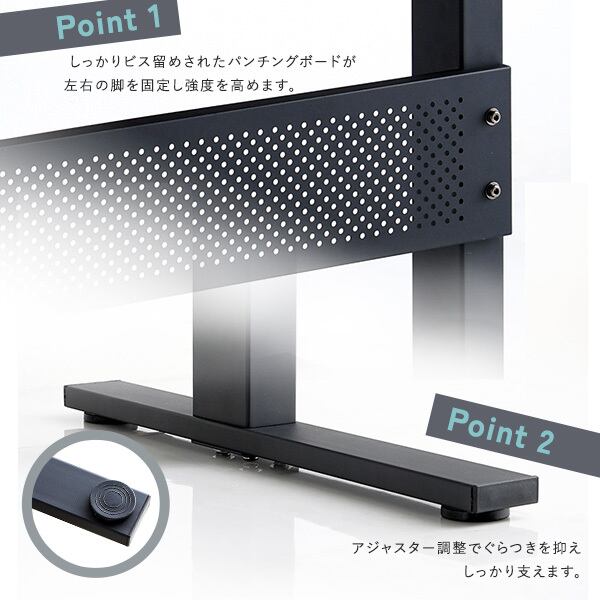 レバーワンタッチで調節可能な昇降テーブル。