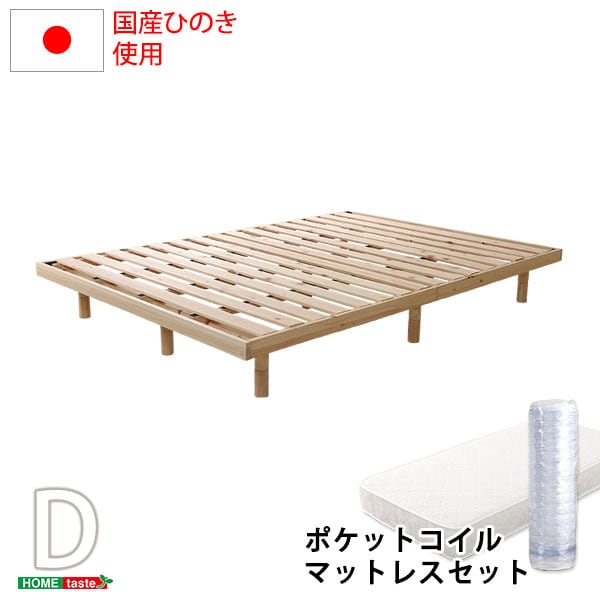 通気性バツグンの脚付き総檜すのこベッドと柔らかなフィット感のポケットコイルマットレスセット。
