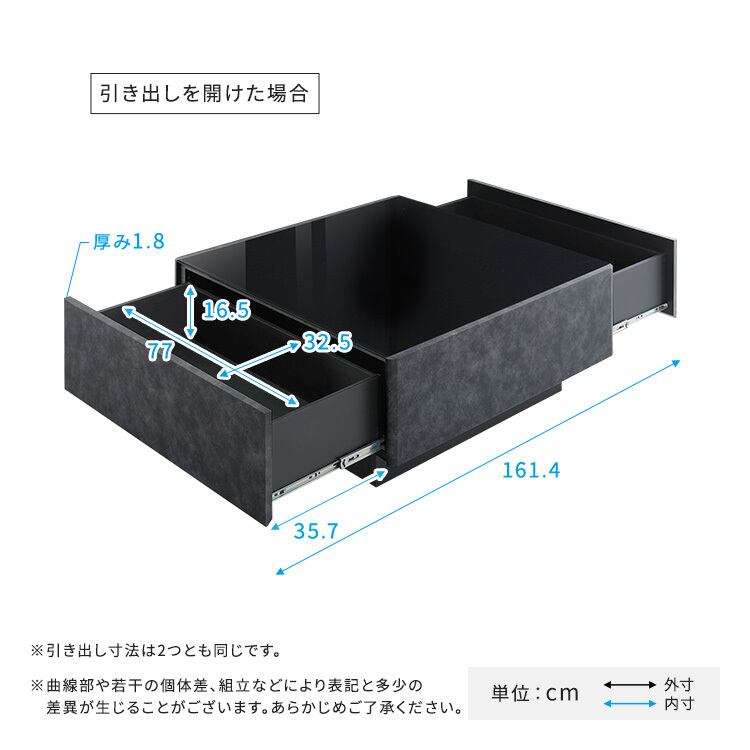 大容量の引き出し収納が2か所あり、生活感を隠して必要なものをしまえる実用性も兼ね備えています。