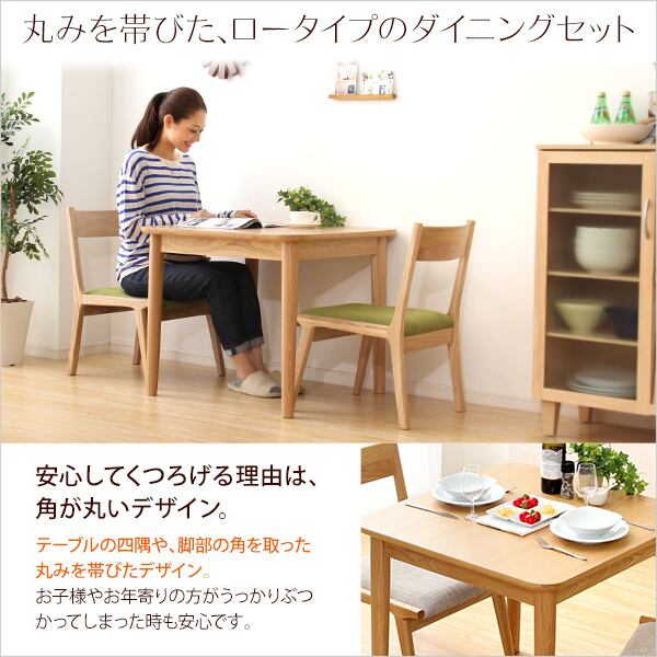 ダイニング3点セット(テーブル+チェア2脚)ナチュラルロータイプ 木製アッシュ材|Risum-リスム-