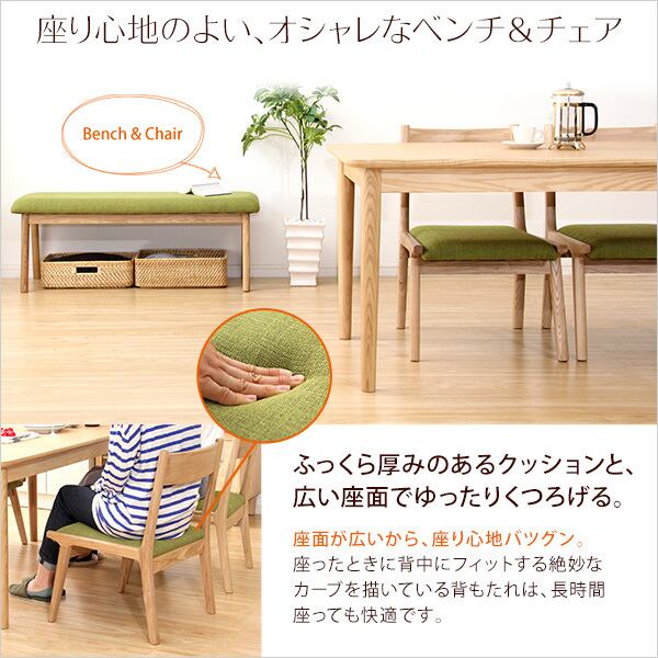 材質:チェア・ベンチ/天然木(アッシュ)、ポリエステル、コットン