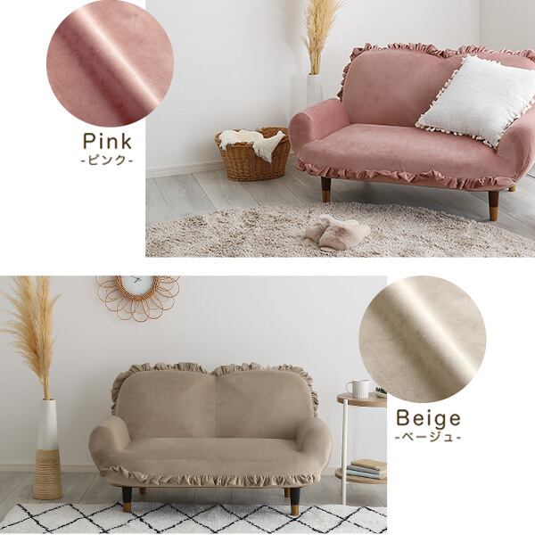 大人かわいいインテリア フリル付きベロアソファ 2人掛け!