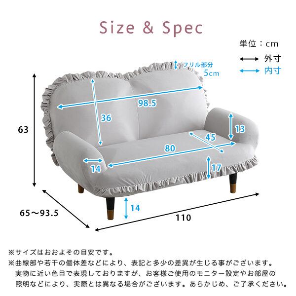 幅110×奥行65-93.5×高さ63cm(座面の高さ31cm)