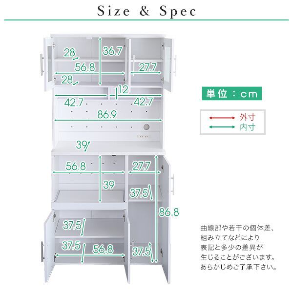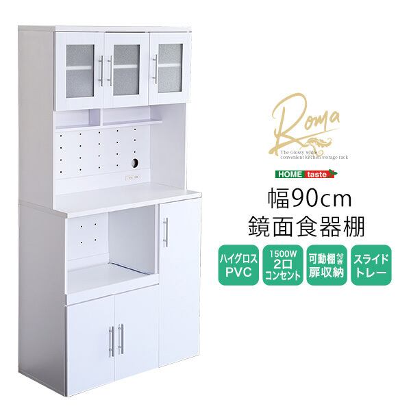 ワイドな食器棚は食器はもちろん、レンジや家電も一緒に収納が可能!