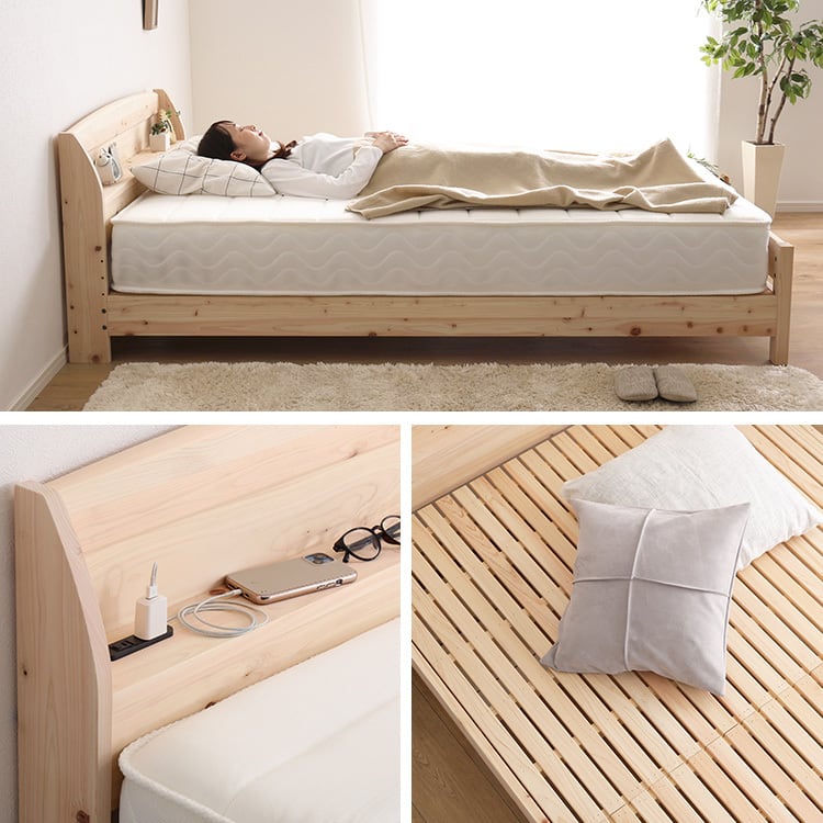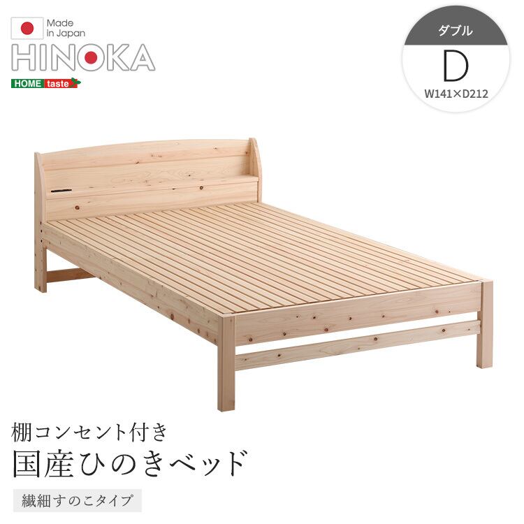 棚コンセント付き国産ひのきベッド 繊細すのこタイプ【HINOKA-ヒノカ-】(ダブル) SH-30-JPHH-D
