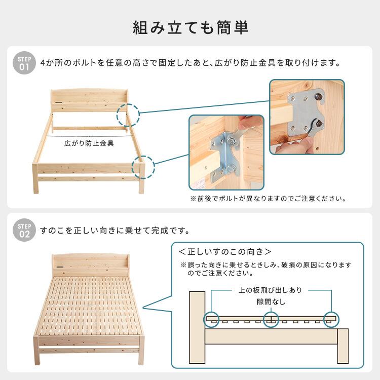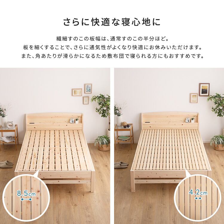 棚コンセント付き国産ひのきベッド 繊細すのこタイプ ダブルサイズ!
