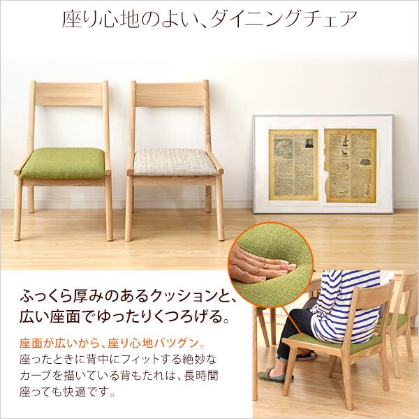 ファブリックがオシャレなチェアは座面が広く座り心地抜群。