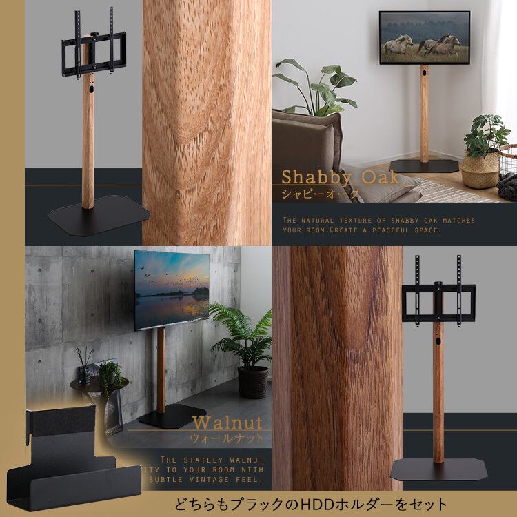 ヴィンテージカラー(ウォールナット、シャビーオーク)をスチール支柱に木目を転写したスタイリッシュなデザインの八角テレビスタンド ハイタイプハードディスクホルダーセットです。