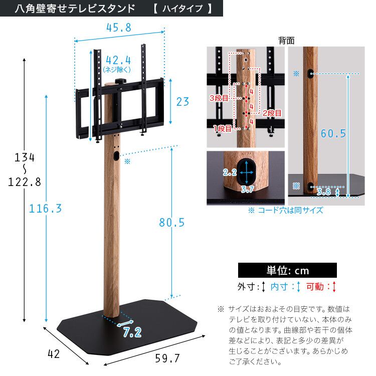 (テレビスタンド)W59.7xD42xH122.8-134cm