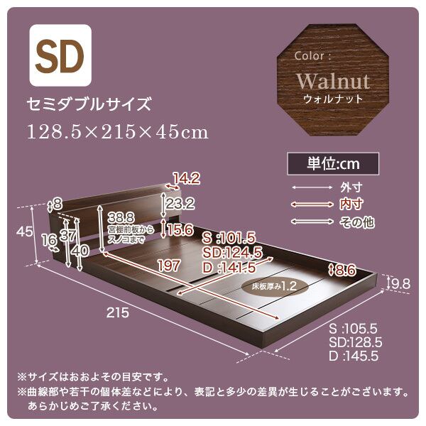解放感ある空間を創るセミダブルサイズのフロアベッド!
