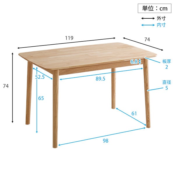 テーブル:幅119x奥行き74x高さ74cm