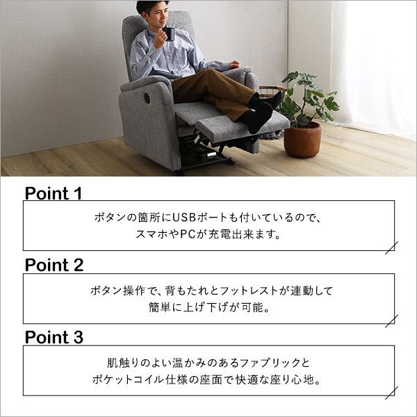 温かみのあるファブリック!1人掛け電動リクライニングソファ!