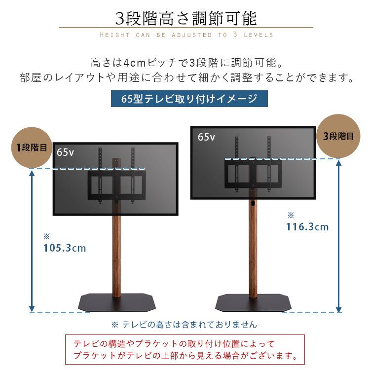 240度のスイングタイプで32〜65インチのテレビを取付できます。
