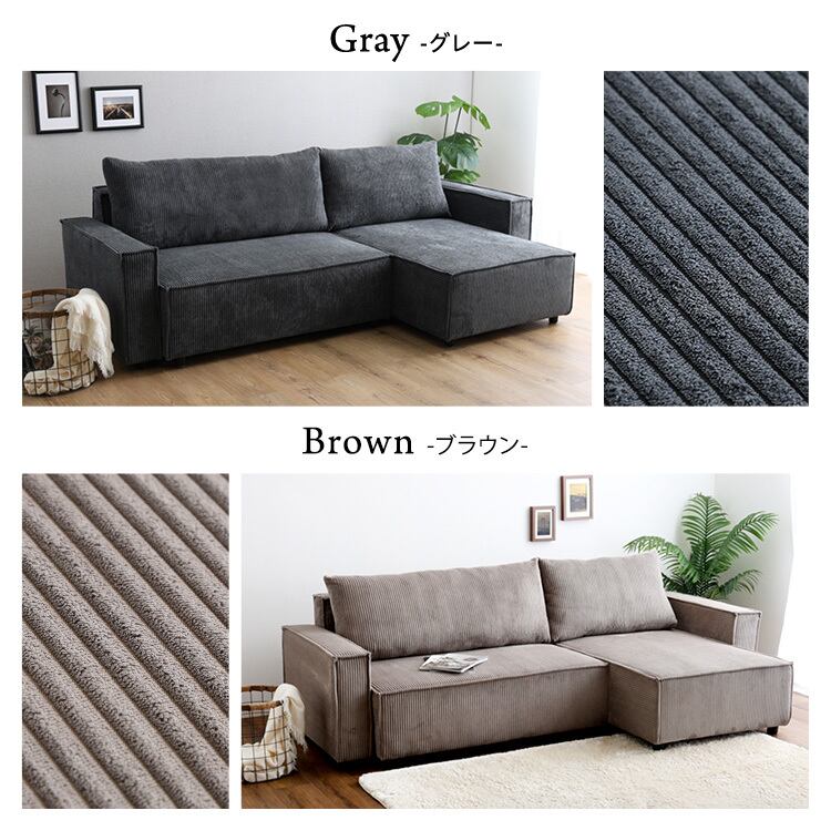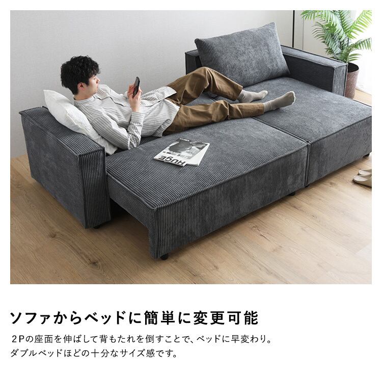 コーデュロイ生地 カウチソファベッド 3人掛け SH-06-CSB