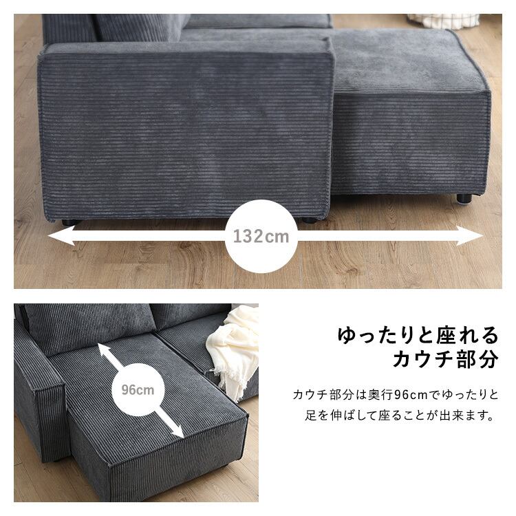 カウチ部分はお部屋やライフスタイルに合わせて、左右どちらでも配置可能。
