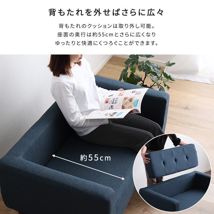 背もたれは外すことが出来、外して広々と座ることも可能です。