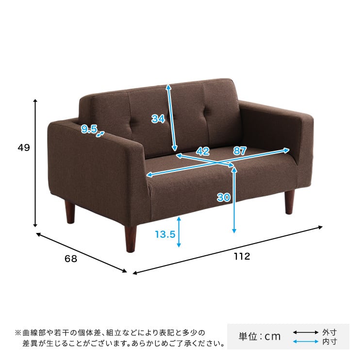 シンプルな2人掛けコンパクトソファ!