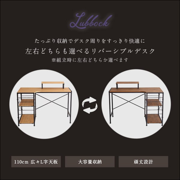 お部屋のレイアウトに合わせて、棚位置を変更できるリバーシブルデスク!