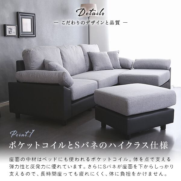レイアウトバリエーションが豊富なファブリック×PVCレザーのカウチソファ!