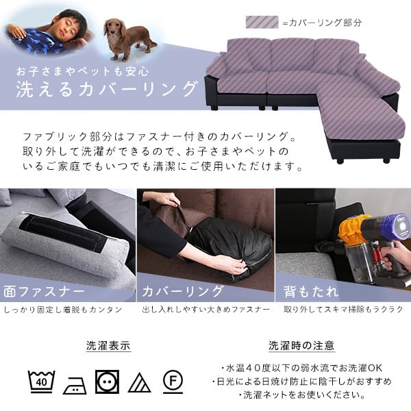 丸洗いができるファブリック製カバーリングでいつも清潔に保つことができます。