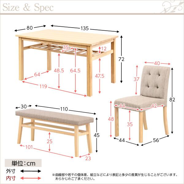 【Diario‐ディアリオ‐】ベンチ付き4点セット