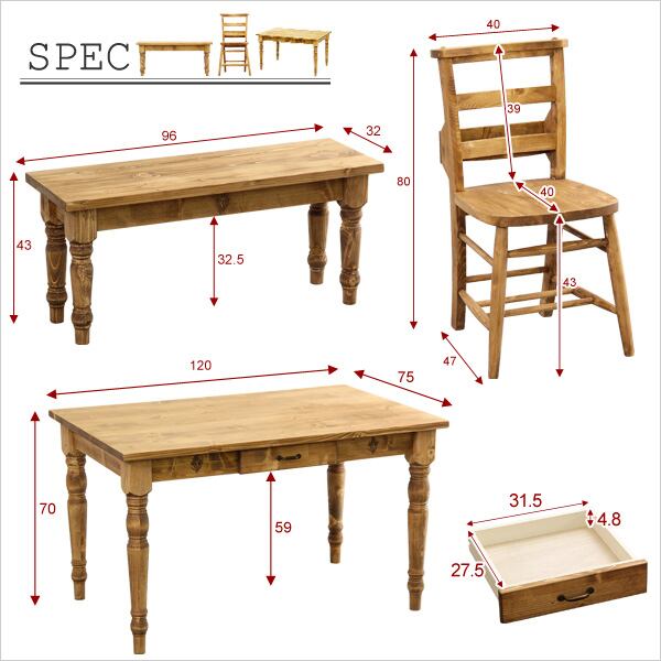 テーブル、ベンチ&チェア2脚のセット!あたたかいデザインがお部屋を明るく演出します!