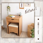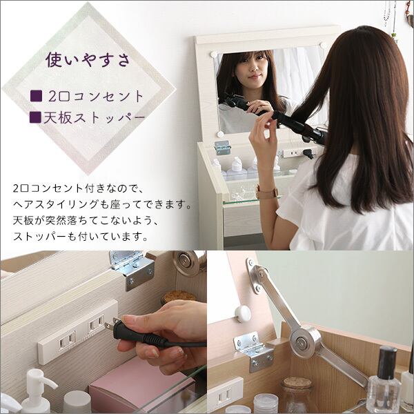 リビングにも置けるコンパクトサイズ!その上、スツールとコンセント付きなので、その場でサッとお支度OK!