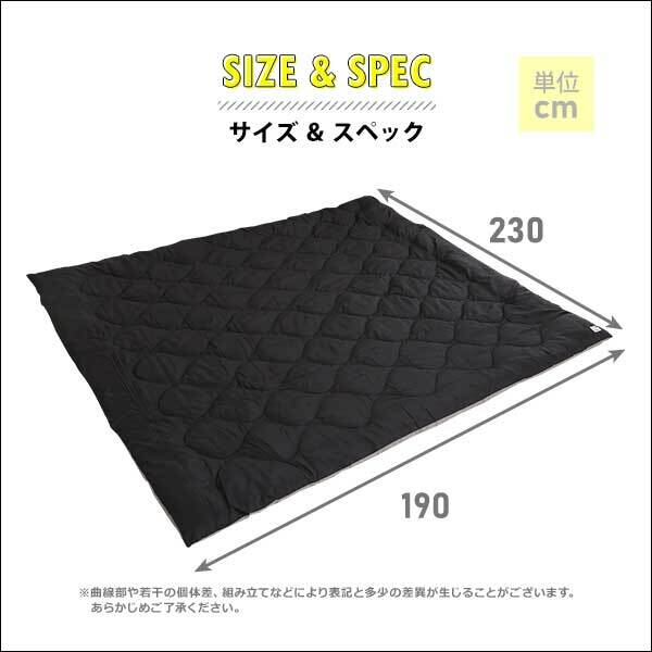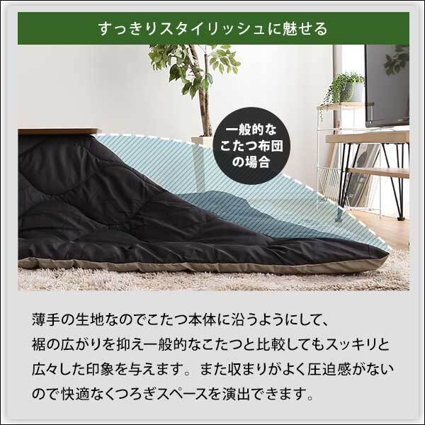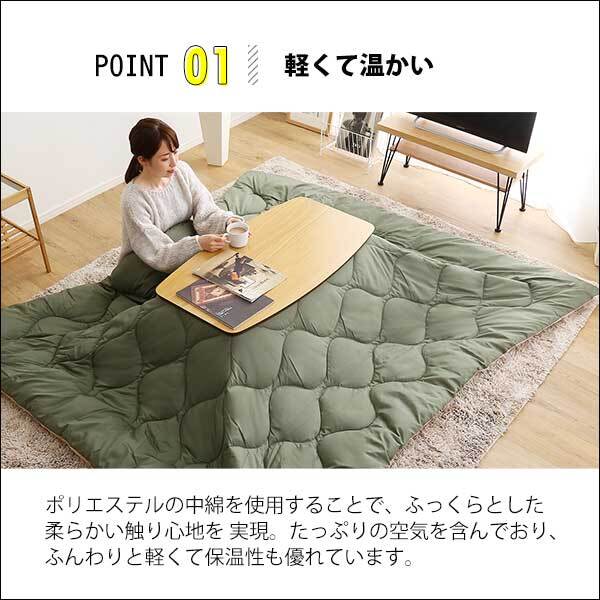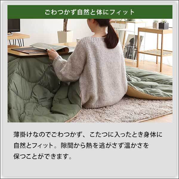 ダウン素材の薄掛けこたつ布団 長方形タイプ。