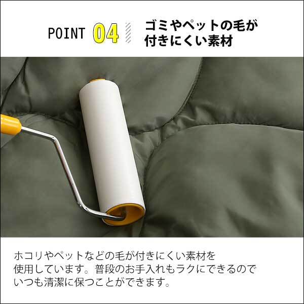 ダウン素材なので、撥水正も高く、ペットなどの毛も絡みにくいので、お手入れラクラク!