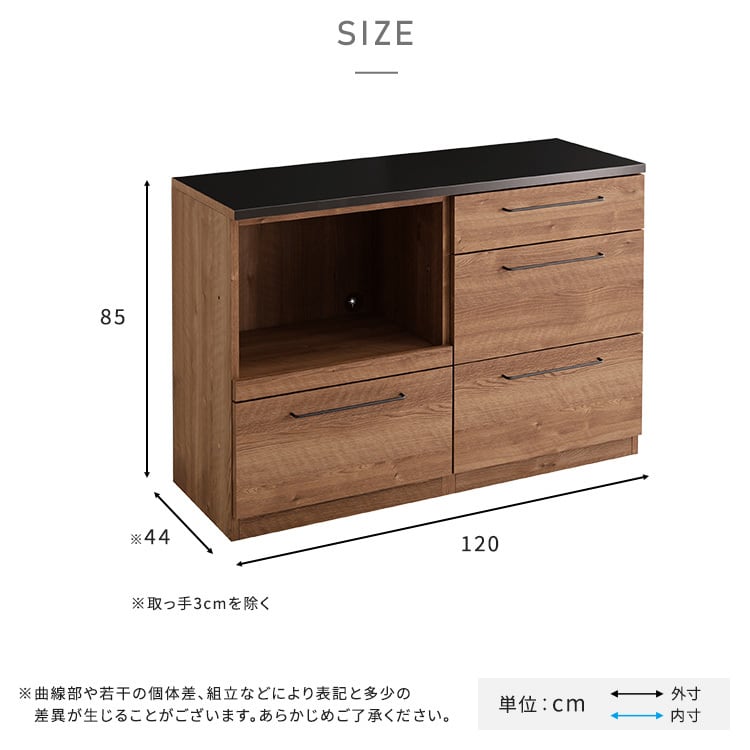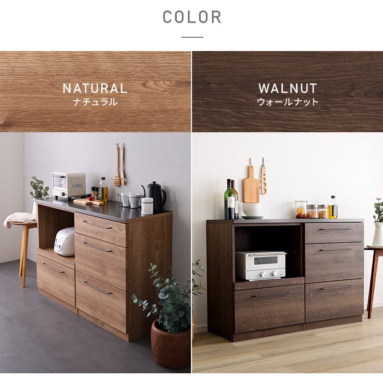 日本製 特殊鋼板を使ったキッチンカウンター 120cm オープン収納+引き出し収納!