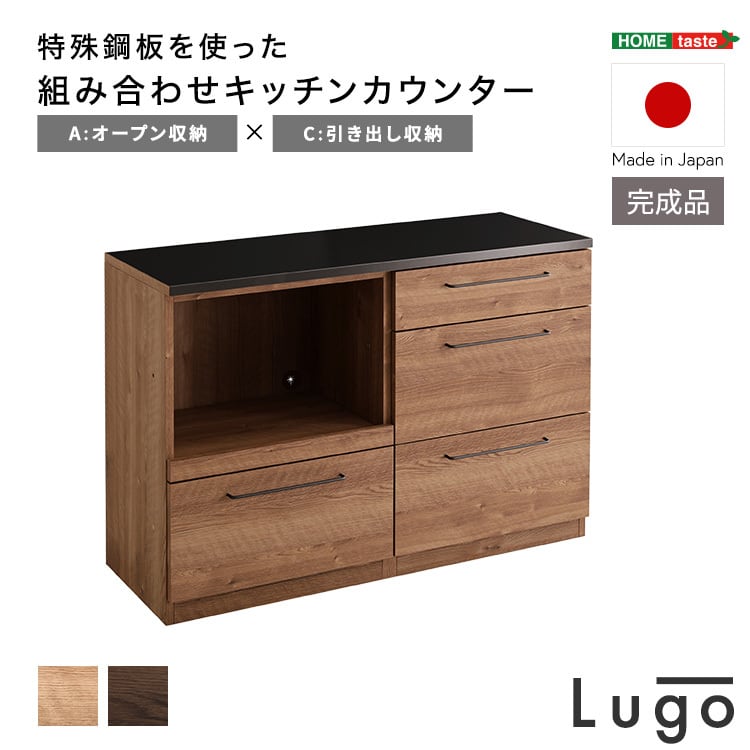 日本製 特殊鋼板を使った組み合わせキッチンカウンター【Lugo-ルゴ-】120cm オープン収納+引き出し収納 SH-22-CKS120-AC
