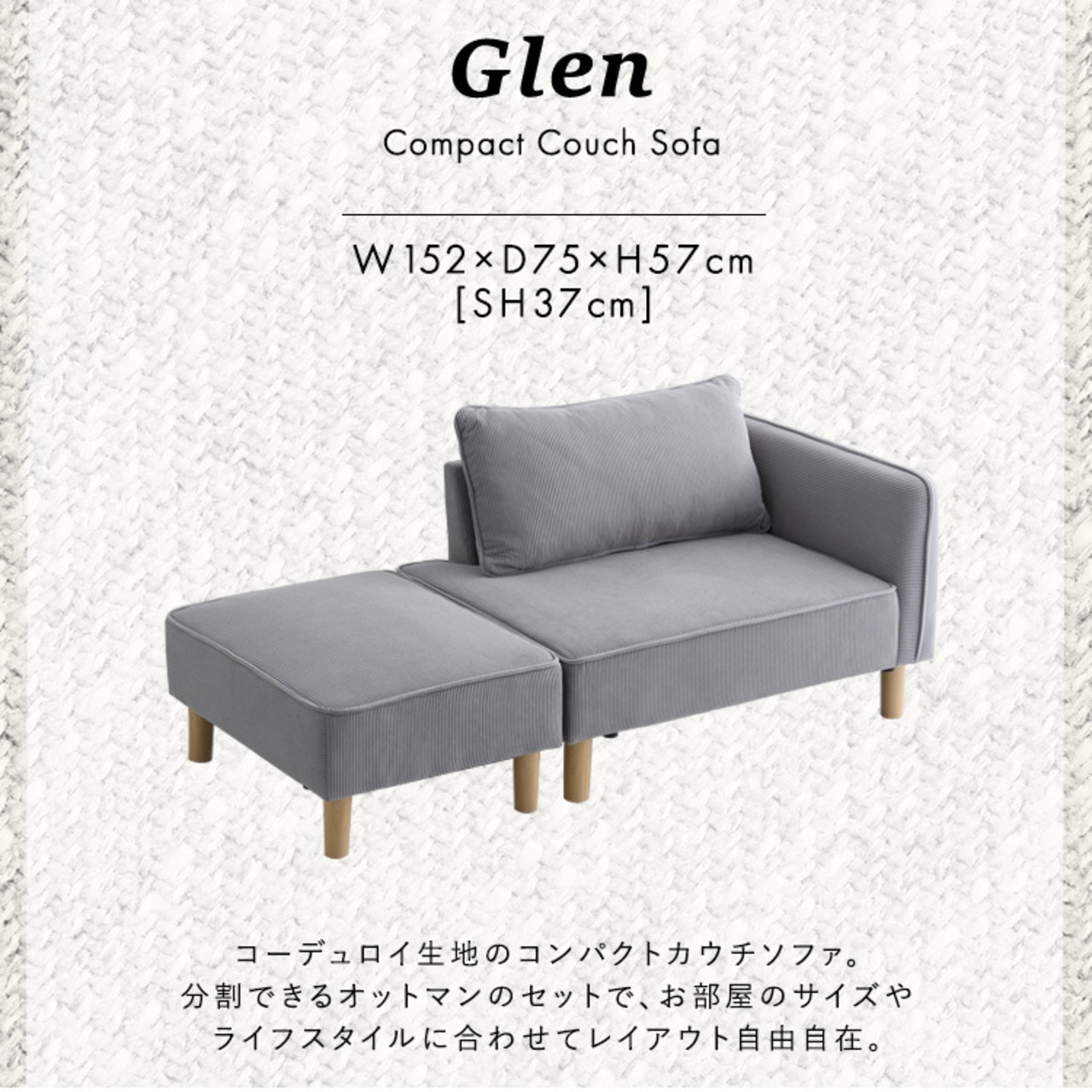 コーデュロイ生地のコンパクトカウチソファ!