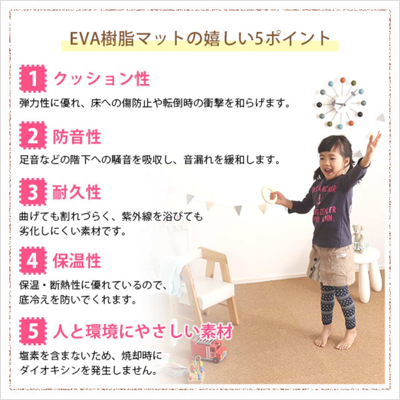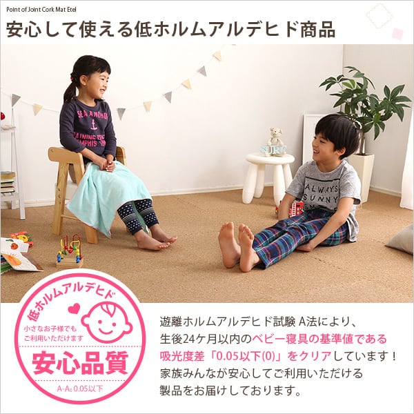 大粒の天然コルクを使用したジョイントコルクマット48枚タイプ衝撃を吸収するEVA樹脂だから防音効果や保温効果があります!