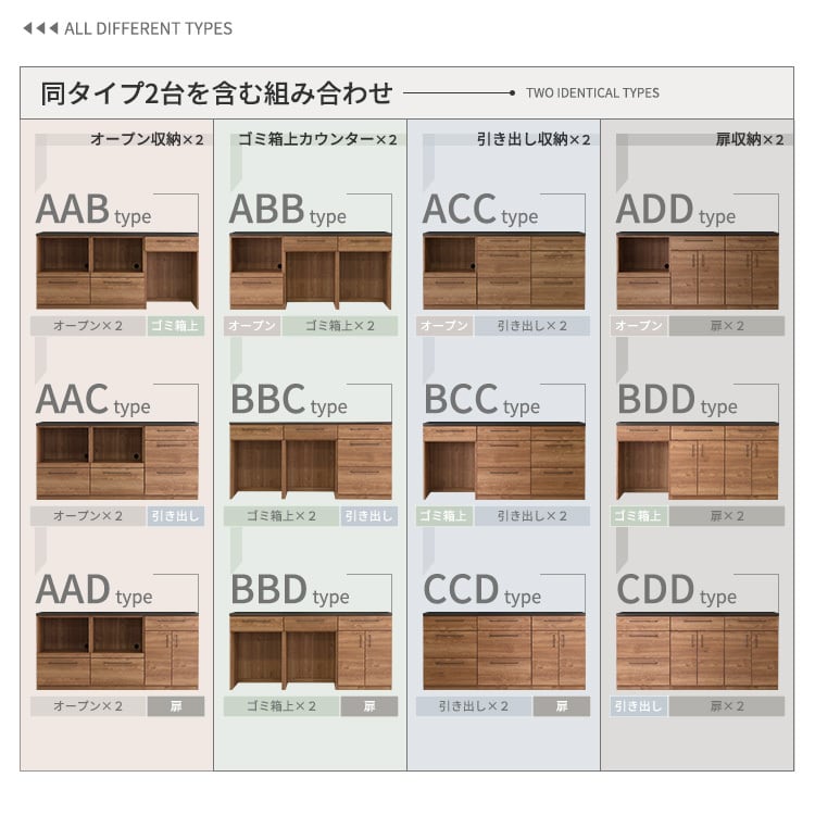 外寸はどの仕様も同じなので他の仕様のものと並べて使うことも可能です。