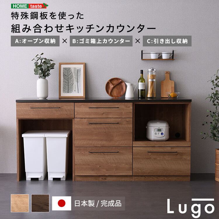 日本製 特殊鋼板を使った組み合わせキッチンカウンター 180cm オープン収納+ゴミ箱上カウンター+引き出し収納 SH-22-CKS180-ABC