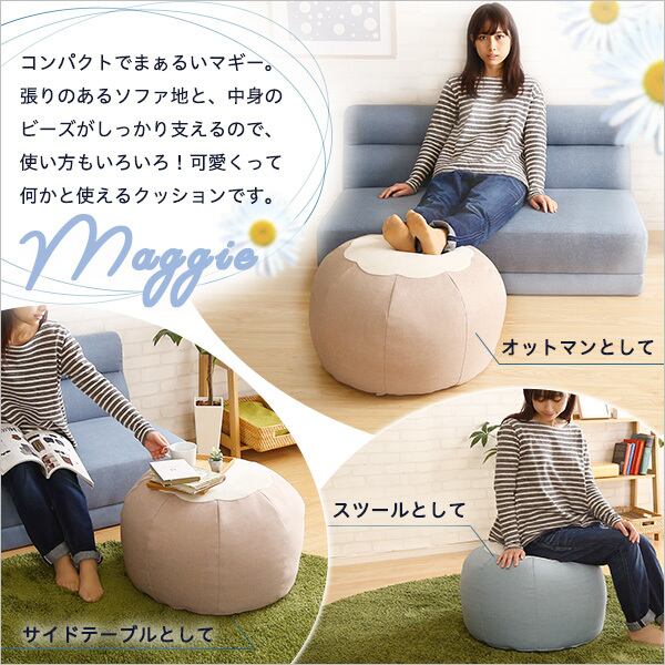 従来のビーズクッションよりもへたりにくい新素材「スゴビーズ」を使用。
