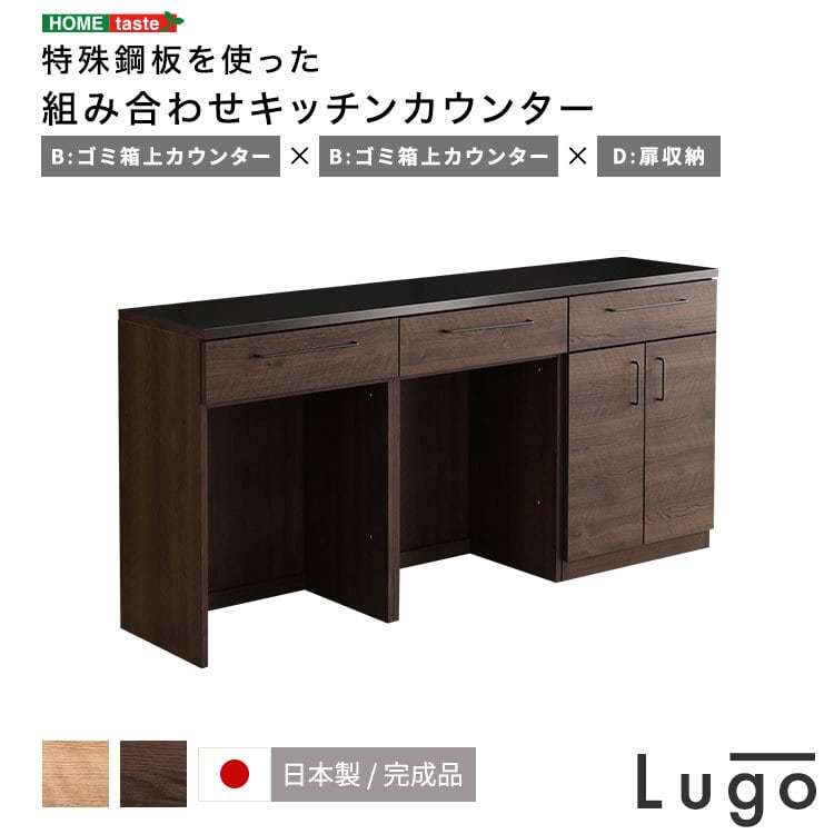 日本製 特殊鋼板を使った組み合わせキッチンカウンター 180cm ゴミ箱上カウンター+ゴミ箱上カウンター+扉収納 SH-22-CKS180-BBD