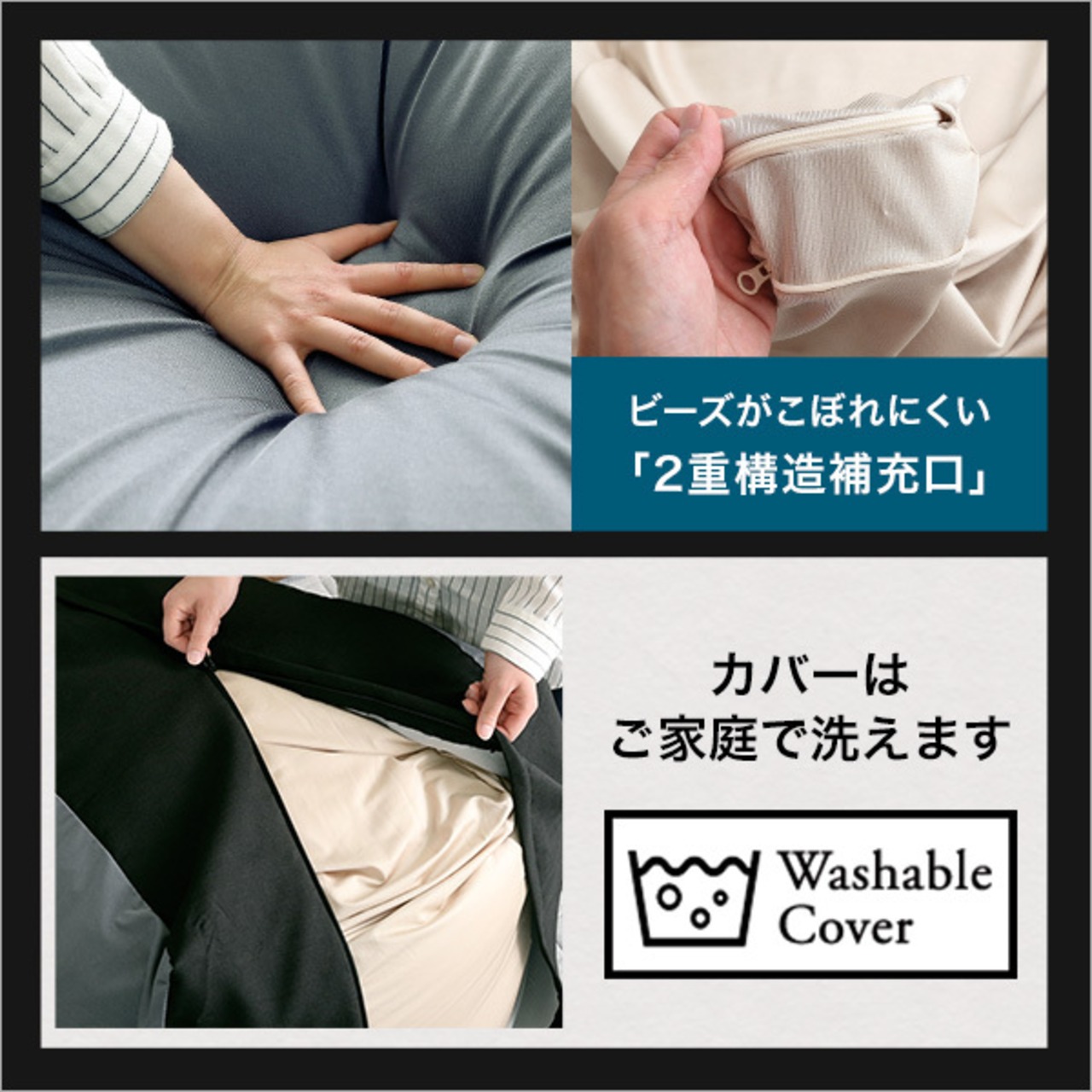 2wayで使える、洗えるカバー付きビーズクッション。