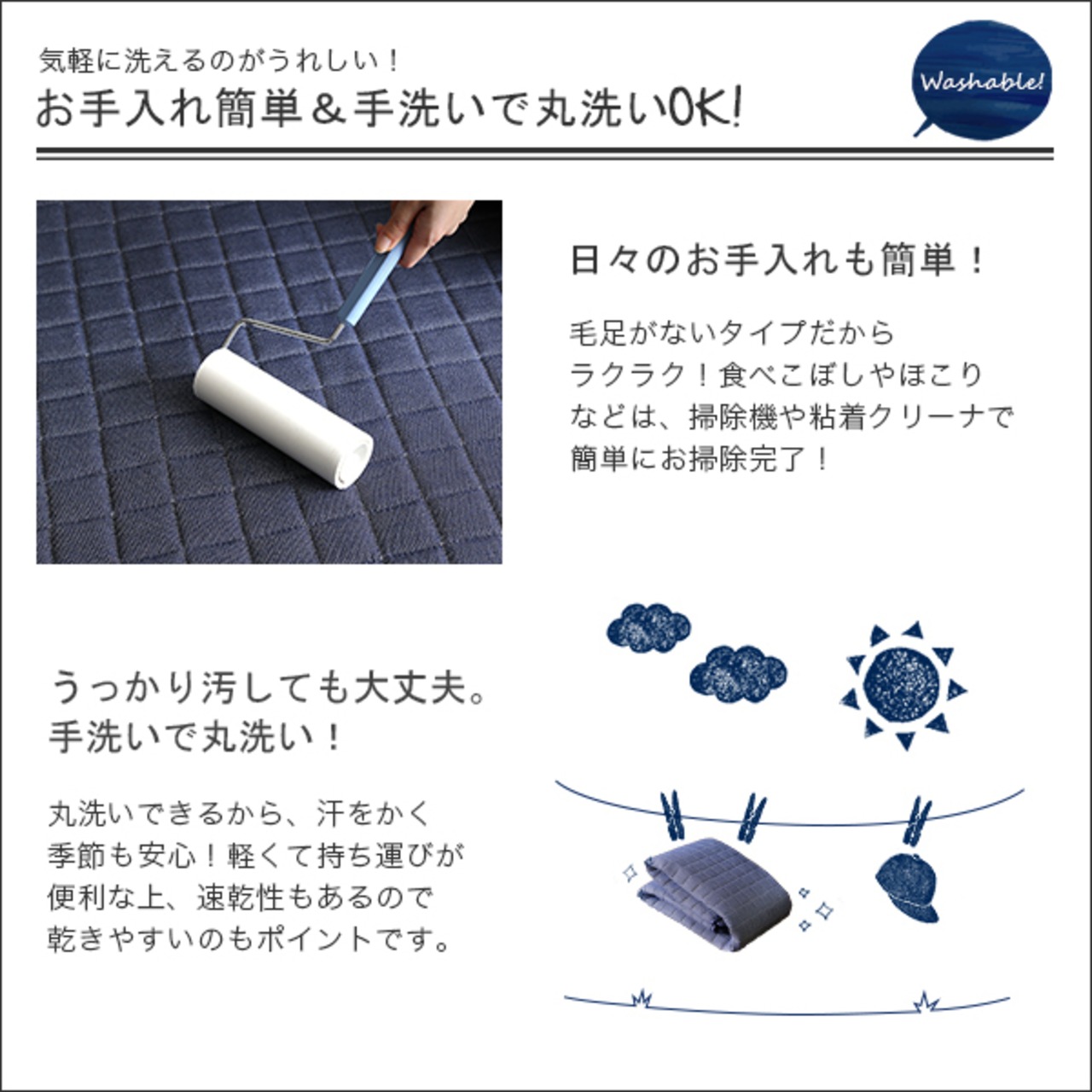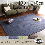 手洗いできて、オシャレなキルティングデニム調ラグ【Lサイズ190×240cm】