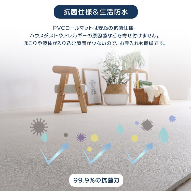 ロールタイプのフロアマットなので継ぎ目が少なく、隙間からゴミが落ちてしまう心配がなくなります!