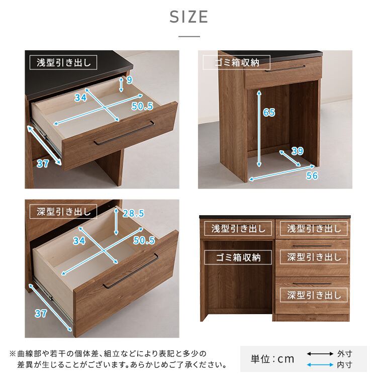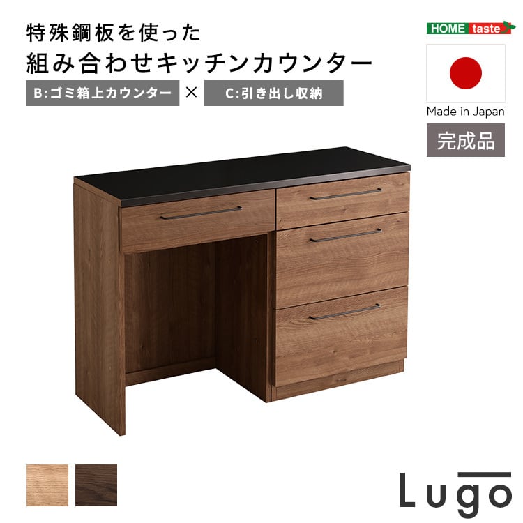日本製 特殊鋼板を使った組み合わせキッチンカウンター【Lugo-ルゴ-】120cm 引き出し収納+ゴミ箱上カウンター