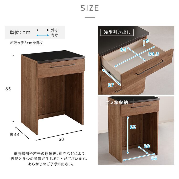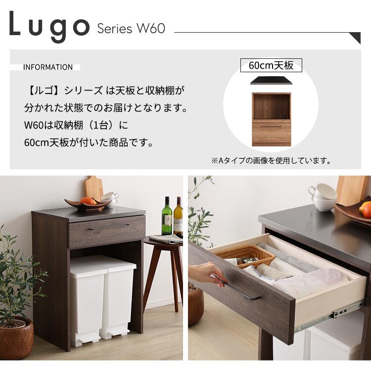 日本製 特殊鋼板を使ったキッチンカウンター【Lugo-ルゴ-】ゴミ箱上カウンター 60cm SH-22-CKS60-B