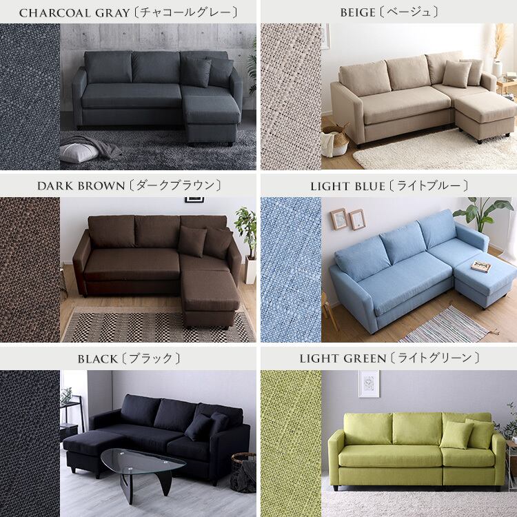 お部屋の間取りに合わせてレイアウトを自由に変更できるファブリックコーナー3人掛けソファ!