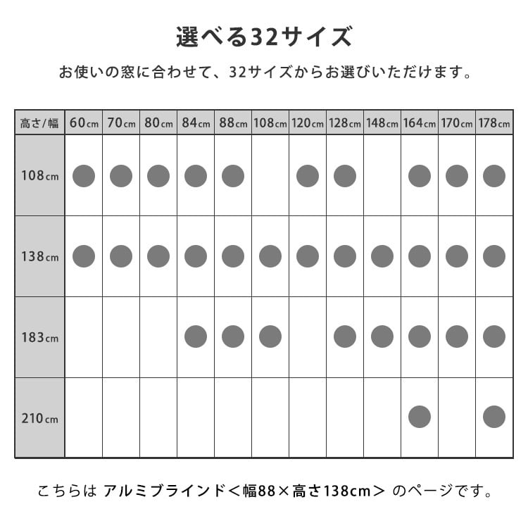 全32サイズで、お使いの窓に合わせてサイズをお選びいただけます!
