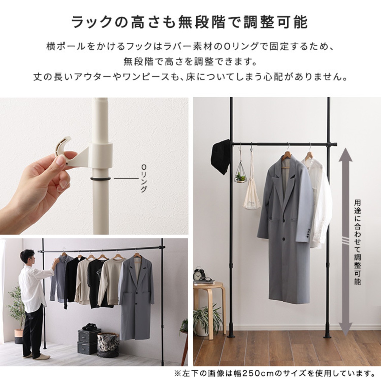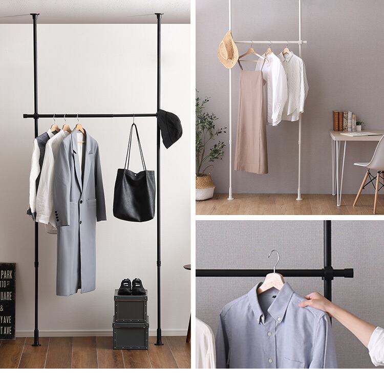 床と天井があれば、お部屋のどこでも使う事が出来る、おしゃれなつっぱりハンガーラック!